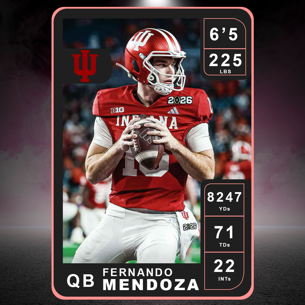 Fernando Mendoza, QB, Indiana (Senior) De retour pour cette cuvée 2026, The TrickPlay vous propose de nouveau de plonger plus précisément dans le jeu des joueurs de demain. Qui confirmera ses points forts ou ses points faibles ? Qui sera surcoté, sous-coté ou bien évalué à sa juste valeur ?
